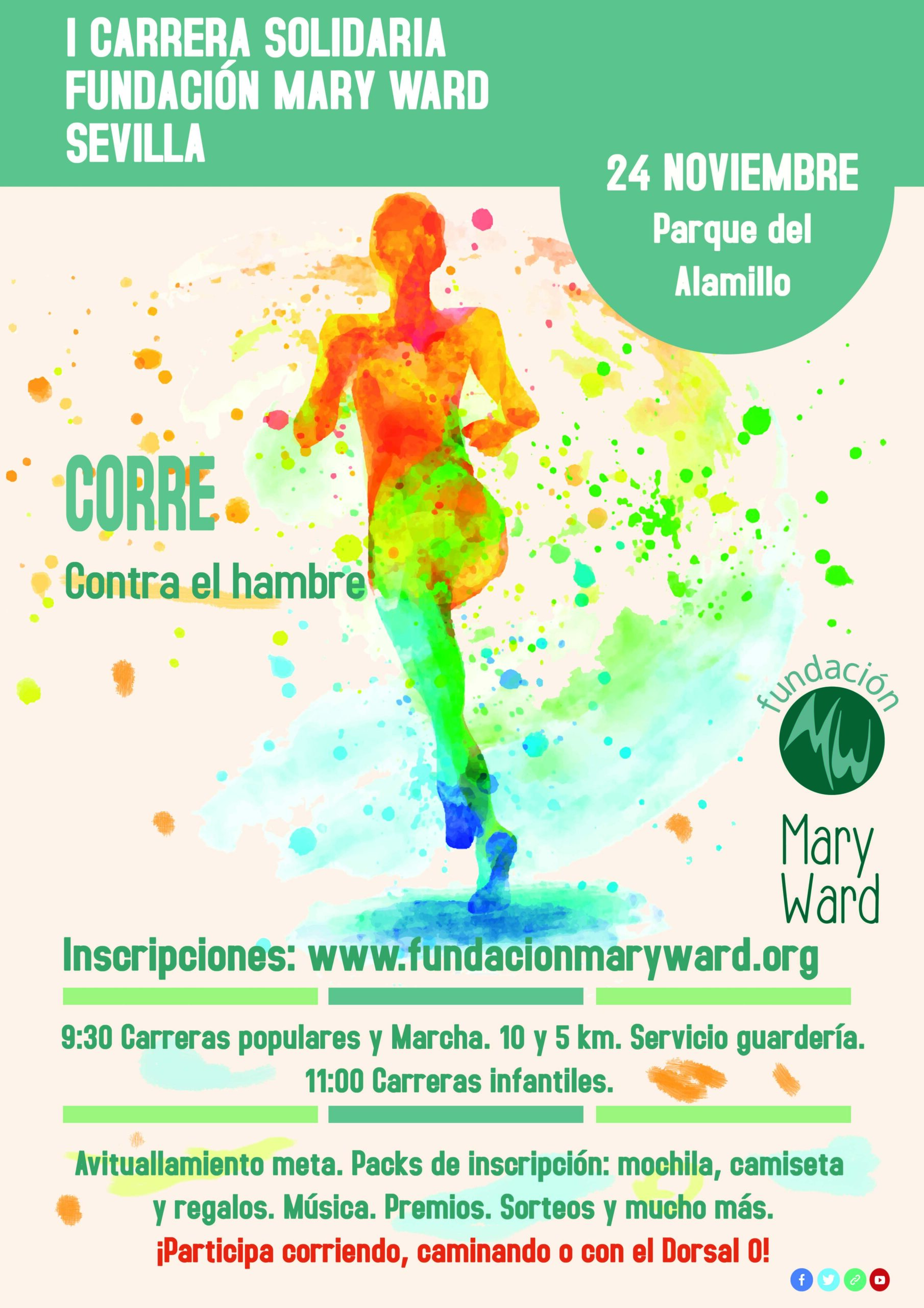 El sábado, 24 de noviembre, en el Parque del Alamillo, en Sevilla, os esperamos para celebrar la I Carrera Solidaria Fundación Mary Ward. Un evento que estábamos deseando poder organizar en Sevilla y que por fin está a la vuelta de la esquina.