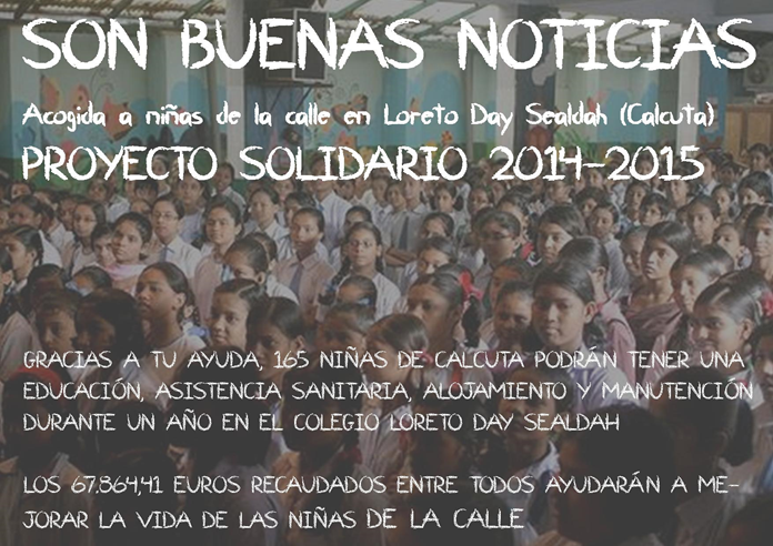 Durante el curso 2014-2015, los colegios BVM se han volcado con Calcuta, la ciudad india donde miles de niñas viven en la calle sin posibilidad de acceder a ningún tipo de formación ni, por tanto, trabajos remunerados y dignos. El proyecto solidario de este año se ha articulado en torno a la iniciativa Rainbow Project, que tiene como objetivo garantizar el derecho a la educación de las niñas sin hogar en Calcuta ofreciéndoles apoyo académico y personal, y habilitando las instalaciones de los colegios BVM para que puedan alojarse.