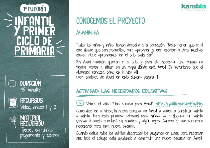 Todos los niños y niñas tienen derecho a la educación. Todos tienen que ir al cole desde que son pequeños, para aprender a leer, escribir y otras muchas cosas. ¿Qué aprendemos en el cole cada día? En Aweil también quieren ir al cole, y para ello necesitan uno porque no tienen. Vamos a situar en un mapa dónde está Aweil. Es importante que el alumnado conozca cómo es la vida allí.